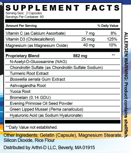 Some of the things that make Arthri-D3® so unique is that it’s an all-natural, well balanced proprietary blend of antioxidants, phytonutrients, vitamins and minerals. It also contains 2000 IUs of Vitamin D3. No other joint health product has this blend including N-Acetyl-Glucosamine and vitamin D3, which studies have shown are extremely important for joint health.