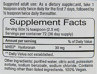When ingested in the liquid form, HA is absorbed by mucosal tissues in the mouth, the esophagus and gastrointestinal tract. In addition to directly supplying HA, using a HA supplement also causes the body to signal production of more HA via the body’s natural feedback loop.