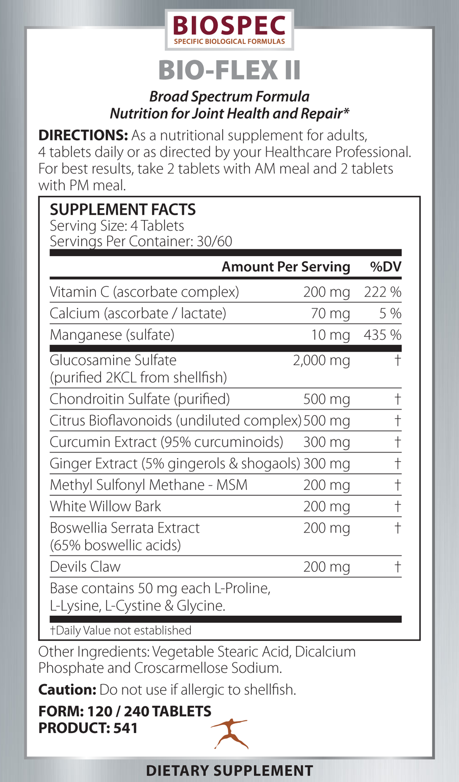 Bio-Flex II is a comprehensive blend of the three leading nutrients that support joint and cartilage health – Glucosamine Sulfate, Chondroitin Sulfate and Methyl-Sulfonyl-Methane (MSM). Supportive nutrients and anti-inflammatory herbal extracts make this the ideal formula for healthy joints.*