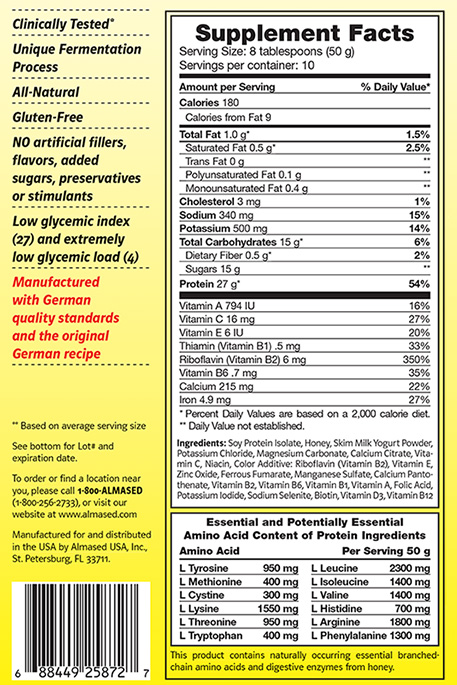 - The high protein content of the Almased Diet will provide a long-lasting feeling of fullness.