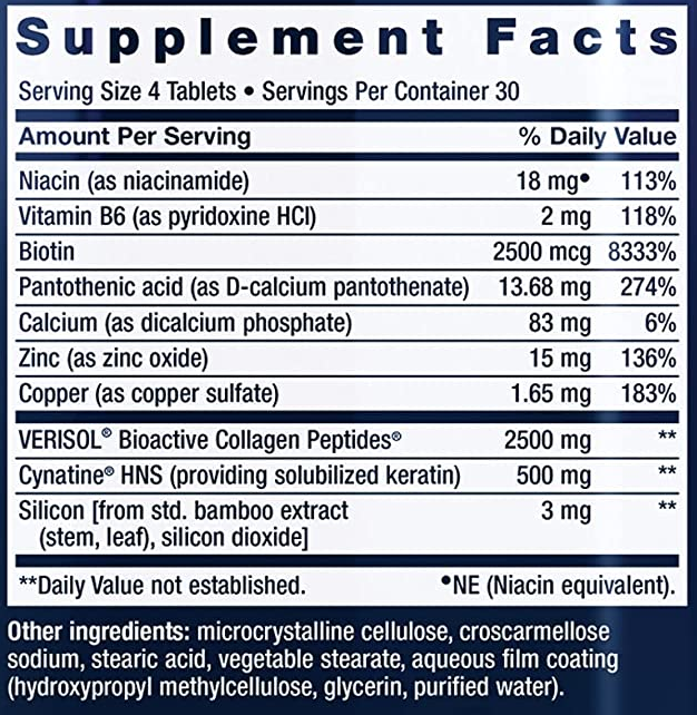 Hair, Skin & Nails Rejuvenation Formula with VERISOL® is a unique, orally ingested formula packed with nutrients that promote collagen and keratin health. These proteins keep hair, skin, and nails looking youthful, healthy, and vibrant. Ingredients such as Cynatine® HNS Plus, VERISOL® Bioactive Collagen Peptides®, and silicon and biotin will help restore beautiful hair, radiant skin, and healthy nails.