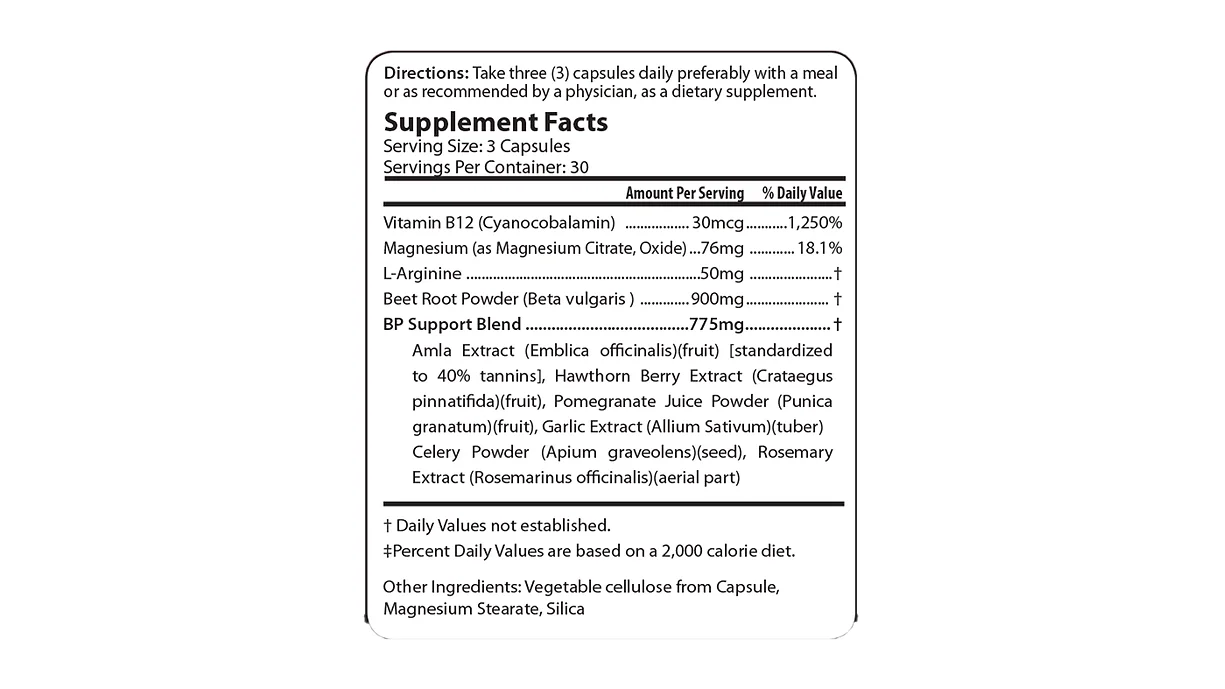 With Amla Fruit Extract (Indian gooseberry) and Beetroot (Beta Vulgaris) that’s used to help increase nitric oxide in the body and also help lower levels of triglycerides (a type of fat) in the blood.