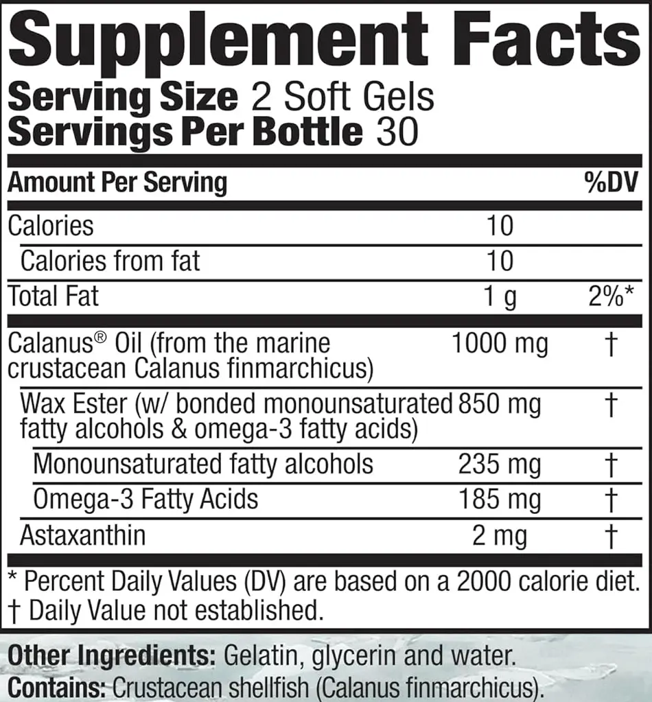 • Provides omega fatty acids sourced from North Atlantic calanus oil