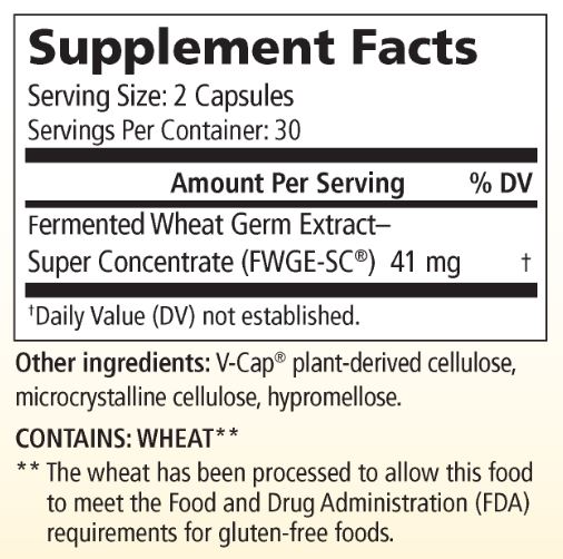 American BioSciences developed a patent pending combination of technologies used in food processing which concentrates the “bioactive fraction,” referred to as FWGE-SC (Fermented Wheat Germ Extract– Super Concentrate). Non-active molecules, including gluten, are excluded from the product. Studies show that 41 mg of FWGE-SC, which is found in Metatrol, has the same biological effect as 5,500 mg of pure FWGE, as found in AvéULTRA, and 17,000 mg of spray-dried FWGE.