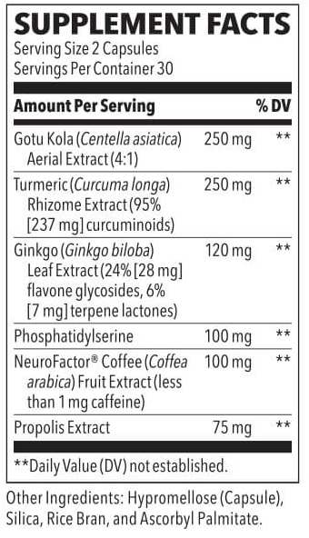 - Coffee Fruit extract fuels brain-derived neurotrophic factor (BDNF), which boosts nerve transmission; contains 2mg of caffeine per serving.