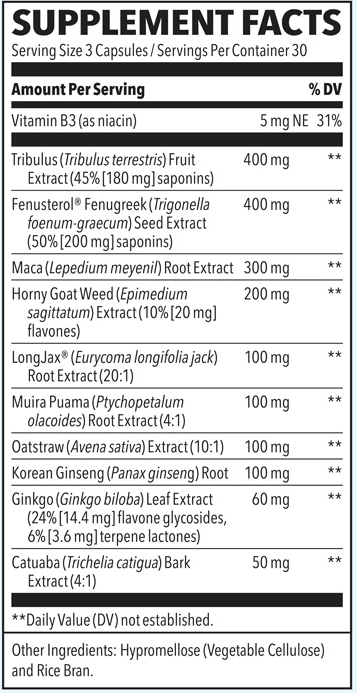 We use herbs like Maca, Longjax, Fenugreek Seed, Muira Puama, Tribulus, and Horny Goat Weed.