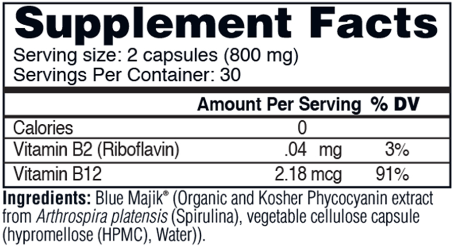 This unique combination is not seen in standard Spirulina powder. PC is clinically shown to relieve physical discomfort, which means consumers feel better, can do more activity, and enjoy an overall better quality of life* Blue Majik is derived from the highest quality, organic raw material. Perfect as a natural blue food colorant for beautiful smoothies, lattes, ice cream, or any other blue food creation.