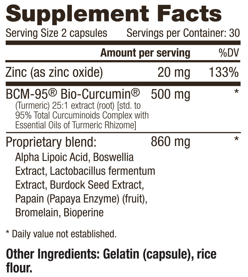 - BCM-95® — 7-10 more bio-available (absorbable) than curcumin/ turmeric alone.
